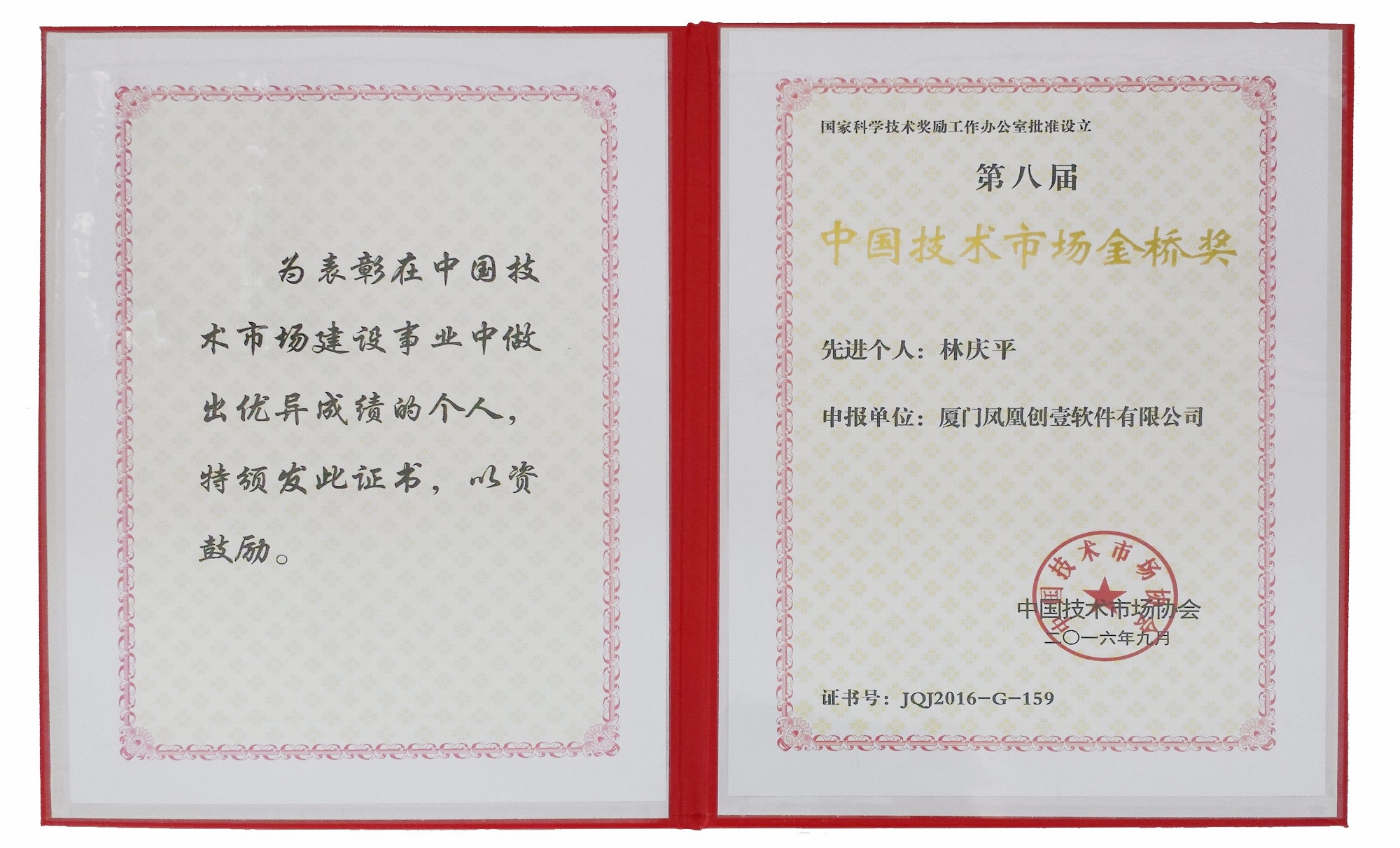 日前,中國技術(shù)市場協(xié)會公布了“第八屆中國技術(shù)市場金橋獎”獲獎名單,本司(廈門鳳凰創(chuàng)壹軟件有限公司www.triplejproducts.com)總經(jīng)理兼技術(shù)總監(jiān)林慶平博士榮膺“第八屆中國技術(shù)市場金橋獎金橋獎......